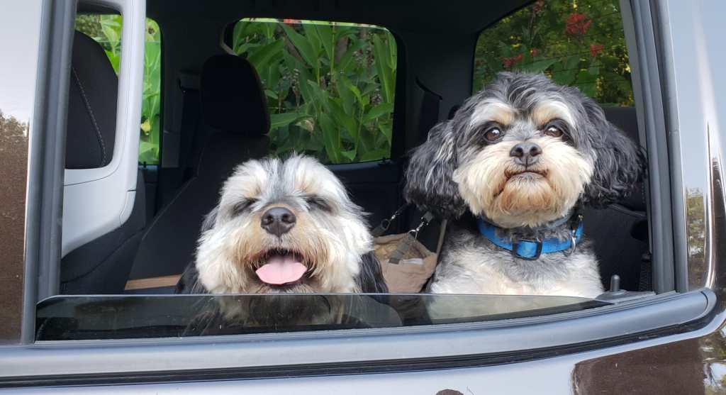 Bernie with a fellow doggie daycare friend. Their eyes crack me up πŸ™‚
