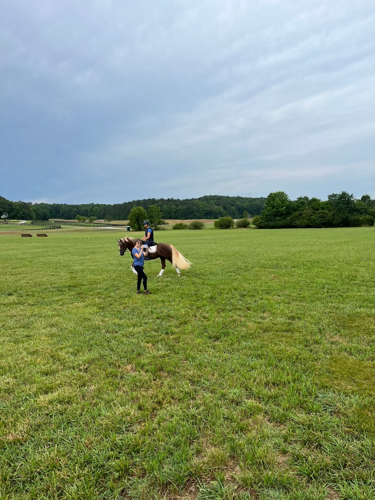 Remus was pretty good throughout the ride a bit looky but it was a bit humid so he settled well. It is hilly there, reminds me of Fair Hill a bit. So you know us and hills. Yeah he got tired quick. But it was a great lesson. Waylon just worked on each of us and our issues. One lady had been tossed in the mud the day before with her horse so even though she was sore she did a bunch of baby jumps and got over her fear and her horse was so good. The Welsh stallion was a last minute substitute and had only had 25 rides give or take before coming. It was so amazing watching Waylon work with her by not pushing that baby but giving him his time and telling the owner what to do to let him learn how to jump without freaking him out. By the end of the lesson, that pony was jumping like he had been doing it for years. What a star. Everyone did great. It was a good group of people. The young girl with her green mare did great too. We all were laughing and having SO much fun. By the time we got to the water and jumped some more I told Waylon we were done. We still had more time but he agreed we had all done a lot and were ready to be finished.