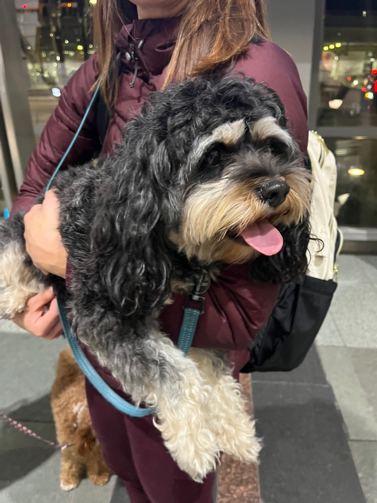 Also arriving at the airport Tuesday evening, I saw a Bernie clone as I went downstairs the escalator to the baggage claim. How cute was this pup???
