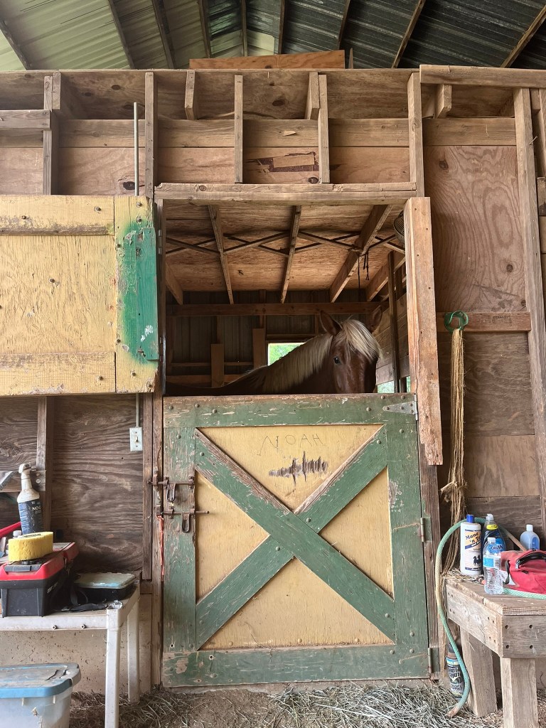It is pretty hot here still. Finn has started sweating again but by afternoon he is huffing and puffing in his stall in front of his fan. It is not fun at all.