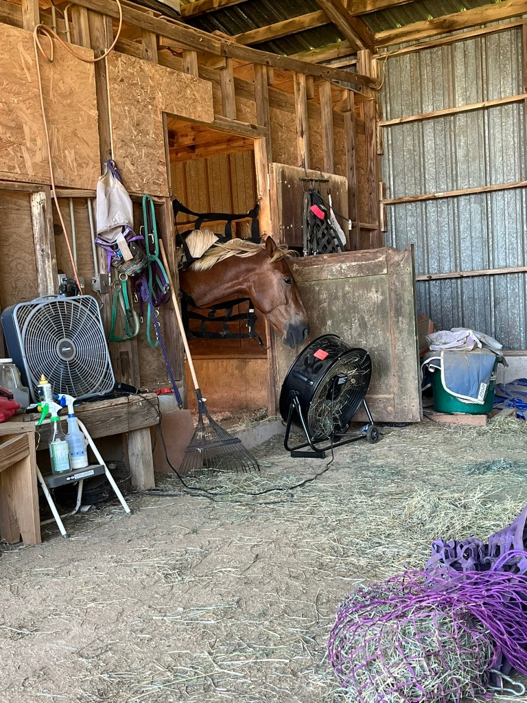He has rain rot again on his hip and back legs (he lays down at night in the pasture and honestly the dew point is insane and the humidity so not shocking he has rainrot). We medicated him today and hopefully will clip him (or start clipping) tomorrow. Operation FINNEGAN CLEAN Up has begun!