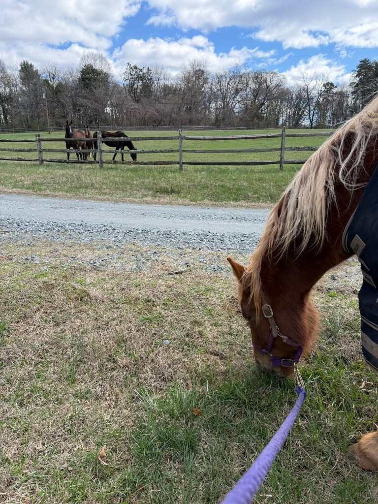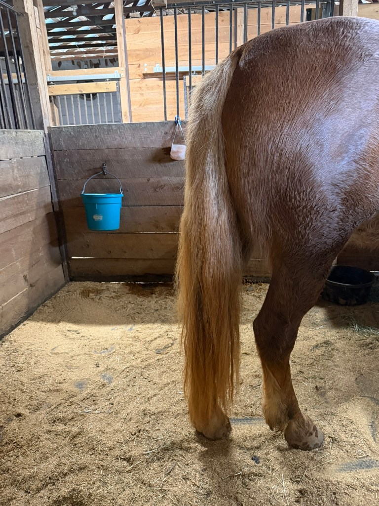 Doesn’t even look like the same horse does it?? Now if the weather will just cooperate!